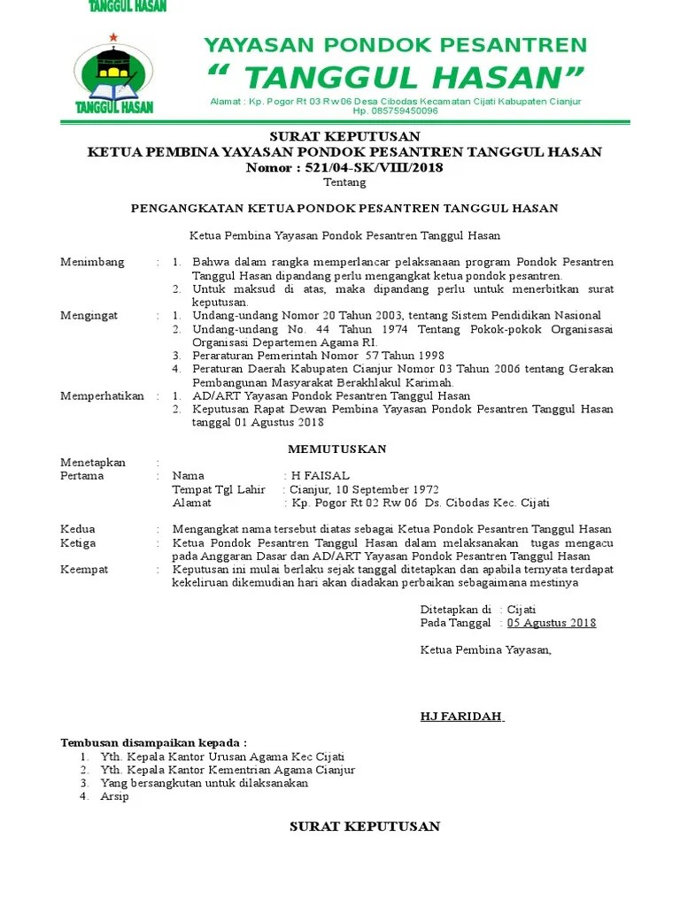 29 tanggal 14 maret 1998. yayasan pondok pesantren al ihsan baron; Proposal pendirian madrasah yang memuat :latar belakang, landasan hukum, tujuan penanggung jawab. Nice contoh surat pernyataan yayasan tidak dalam sengketa 82 dalam ide desain surat pernyataan. contoh kop surat yayasan masjid gawe cv. Adalah tempat tinggal bagi para santri. Domisili perusahaan yayasan (setelah akta dibuat) 7. Pap tidak diterapkan pada badan usaha yang berbadan hukum yang dimiliki oleh pondok pesantren seperti perseroan terbatas. Pap ini diterapkan hanya untuk pondok pesantren yang telah berbadan hukum yayasan, dimana telah terdapat pemisahan kekayaan antara pondok pesantren dengan pemilik yayasan. Hidayah priode 2015 2020 dipandang perlu mengangkat pengurus yayasan. Berikut adalah contoh surat keputusan sk ketua yayasan pondok pesantren atau lembaga islam lainnya. Sebagai lembaga yang memberikan upaya perlindungan, bantuan dan pelayanan kepada masyarakat di bidang sosial, keagamaan dan kemanusiaan. Surat pernyataan bersedia menjadi pengurus/pembina/pengawas yayasan 5.